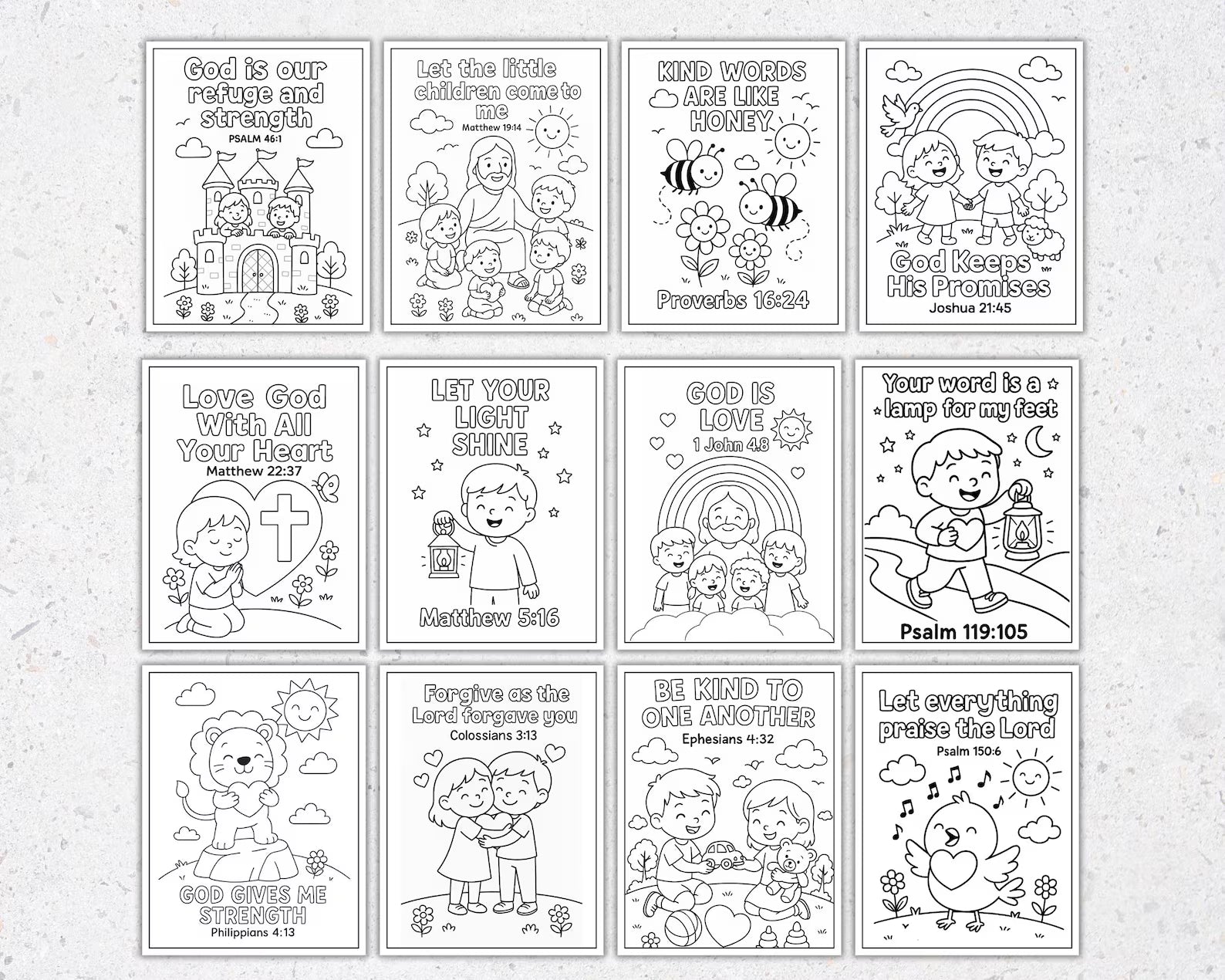 Help children grow in faith while having fun with this printable Bible verse coloring set made especially for kids. This faith-inspired coloring bundle combines creativity and Scripture to make Bible learning engaging, joyful, and memorable.